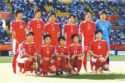7月7日,国际足联向媒体披露,在6日举行的2011德国女足世界杯C组朝鲜队与哥伦比亚队比赛前,朝鲜队两名球员宋贞仙、郑福深的尿检A样品被检测出阳性反应,因此两人均被禁赛。她们二人的B样品将在规定期限内被送去检测,在结果出来前,国际足联将不做定论。图为朝鲜队球员宋贞仙(后排右三)与郑福深(前排右一)作为首发球员在与美国队的比赛前合影(摄于6月28日)。 新华社照片丁 旭 摄