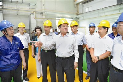 7月5日至11日,中共中央政治局委员、全国人大常委会副委员长、中华全国总工会主席王兆国在黑龙江考察调研。图为王兆国在哈尔滨动力股份有限公司与企业负责人和职工亲切交谈。