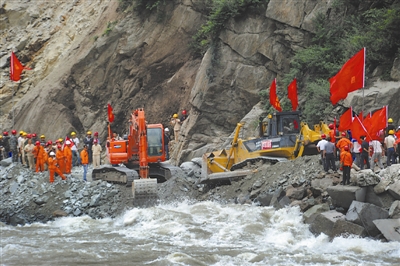 7月14日下午5点左右,四川汶川都汶路抢通成功,道路两侧同时施工,最后合龙。都汶公路是汶川通往外界最重要通道,在汶川地震的救援与重建过程中被称为“汶川生命线”。2日夜晚,因汶川境内普降暴雨引发山洪、泥石流灾害,致使这条道路多处中断。郭喜 摄