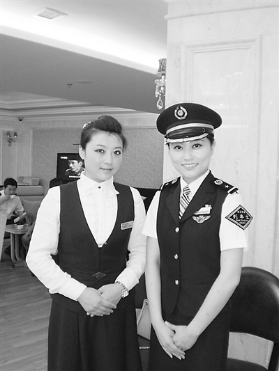 说起身上穿的制服,李倩和郇丽伟都非常自豪。李倩说:“京沪高铁上北京铁路局乘务员的服装都是经过精心打造的,结合了时尚元素和铁路特色。比如列车长的服装有肩章和彩色的领花,餐服员的工作裙设计有四个褶皱,充分考虑了她们工作的方便。观光舱乘务员的服装则是紫色金边的旗袍,非常具有中国特色。这些只是夏装,春秋季节会配有相应的外套,冬天还配有大衣。但京沪高铁上,上海铁路局和北京铁路局乘务员的服装是不一样的。”