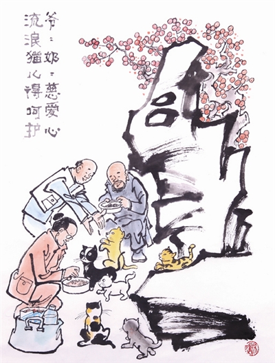 爷爷奶奶慈爱心 流浪猫儿得呵护