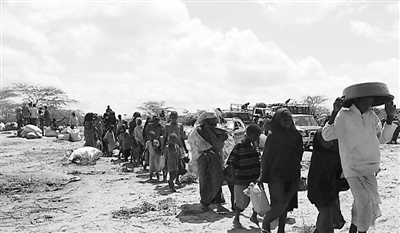 靠近索马里的肯尼亚达达布难民营是世界最大的难民营。据联合国难民署发言人爱德华兹说,目前,每星期仍有成千上万的索马里人逃到那里。最近几个月,难民人数暴增到将近40万,还有一些移民逃往邻近的埃塞俄比亚,使当地情况愈加混乱。能够最终来到难民营的人们都是幸运的,还有很多人没能够坚持到肯尼亚边境,就在路上离开了人世。大部分人都是怀着绝望的心情寻找着心中渺茫的希望,因为留在家乡,已经完全没有任何生存下去的希望了。