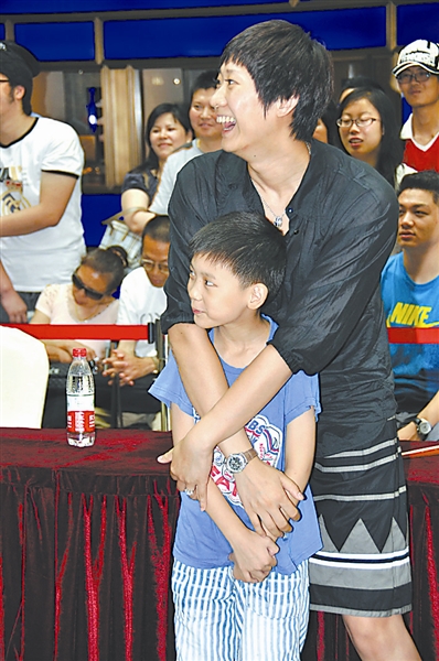 7月10日,前奥运冠军、泳坛名将乐靖宜携儿子现身上海出席世游赛宣传活动。