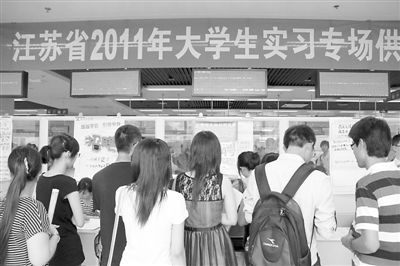 6月12日,江苏省举办2011年大学生实习专场供需洽谈会,80多家单位为大学生暑期实习提供了数千个工作岗位,众多有实习需求的大学生前来应聘。董金林
