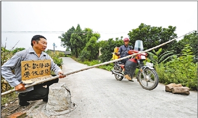 7月16日,重庆垫江鹤游镇团结村,黎开全正拦着摩托车收过路费。