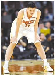 2009年2月15日,西部明星队球员姚明在NBA全明星赛中。