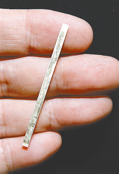 7月18日,微雕大师郭月明展示其创作的《清明上河图》微雕作品。该作品长50毫米、宽2.35毫米。新华社发(薛玉斌 摄)