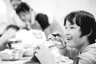 7月22日,在沈阳市青年宫大型青少年体验教育基地,几名聋哑孩子学做蛋糕,体验蛋糕师的工作。新华社发(张文魁 摄)