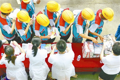 7月27日,在启动仪式现场,志愿者为农民工开展咨询服务。