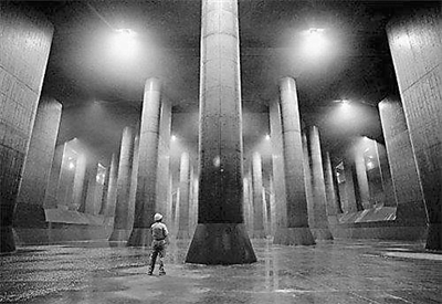 日本是个台风多发国家。东京地区的地下排水系统主要是为避免受到台风雨水灾害的侵袭而建的。这一系统于1992年开工,2006年竣工,堪称世界上最先进的下水道排水系统,其排水标准是“五年至十年一遇”,由一连串混凝土立坑构成,地下河深达60米。