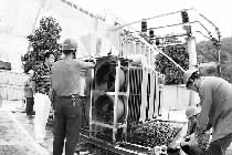 亭下湖水库系宁波市区居民生活饮用水主供水源之一,总蓄水能力1.5亿立方,年供水量达7000万立方,去年顶峰发电3500万千瓦时。图为该局技术人员上门服务亭下湖水库,现场检查检修发变电设备。邱国福 邬晓刚摄
