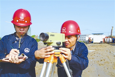 曹利辉(右)在测量现场