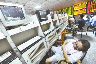 8月2日,在安徽合肥市一证券交易所内,股民在休息。