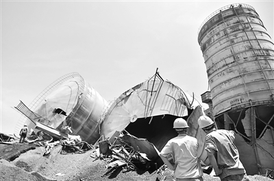 2011年7月28日凌晨2时40分左右,浙江省宁波市鄞州水泥公司内三千吨水泥罐体倒塌,一名操作工人被压。