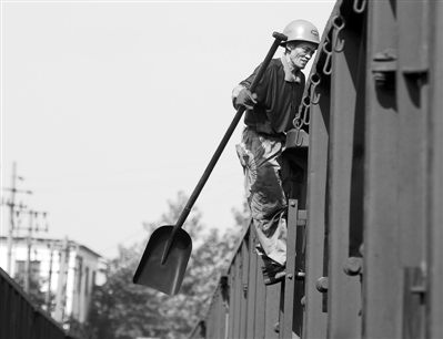 2011年7月29日,在江西九江港龙开河码头,装卸工在高温天气下装运电煤。图为装卸工黄春林在高温天气下登上货车准备装运电煤。