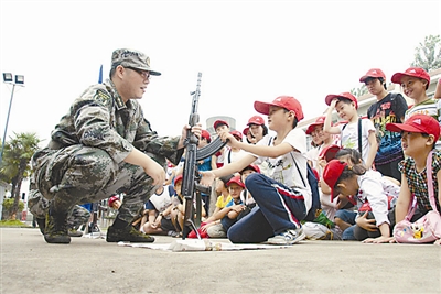 7月20日,中铁四局八分公司关心下一代工作委员会组织46名中小学生到武警部队营地参观。该公司利用暑假期间,在中小学生中开展以“向解放军学习,快乐体验军旅生活”为主题的励志活动。(詹同报 舒郁仁 摄)