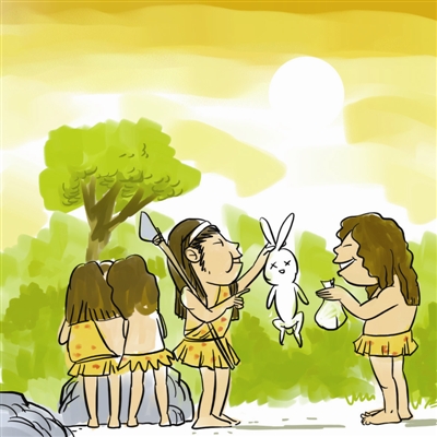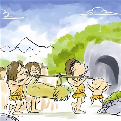 早期人类,居无定所,三五成群,渔猎而食。但是,在对付个体庞大的凶猛动物时,只有联合其他群体,才能获得胜利。随着群体的力量强大,抓获的猎物不便携带,找地方贮藏起来,久而久之便定居下来。赵春青/画