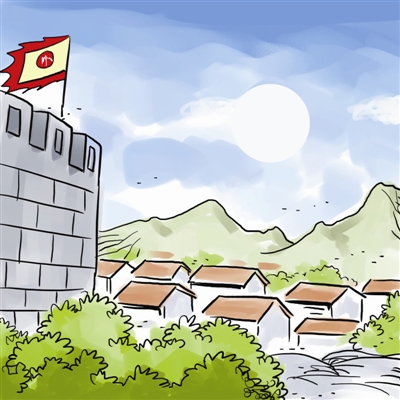 不同村落间为猎物发生械斗。于是,各村落为了防备其他村落的侵袭,便在篱笆的基础上筑起城墙。城以墙为界,有内城、外城的区别。内城叫城,外城叫郭。内城里住着皇帝高官,外城里住着平民百姓。赵春青/画