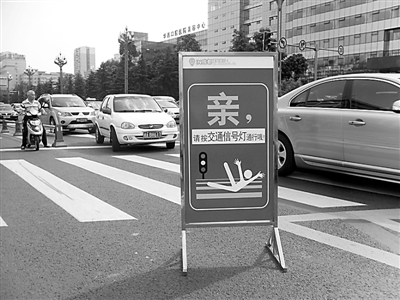 在人流和车流量都非常大的跳伞塔十字路口,两名女性交通劝导员告诉记者,自路口周边安放“淘宝体”提示牌后,无论车辆还是行人,遵守交通规则的状况比过去已有了明显好转。