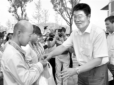 图为8月2日,省总常务副主席顾东武带队到世园会场馆慰问环卫工人。本报记者 毛浓曦 摄