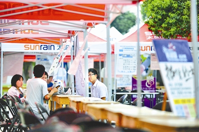 8月14日,在河南洛阳青年创业推介暨创业就业洽谈会上,众多创业项目及银行贷款咨询台,受到了青年大学生的“冷遇”,一些求职单位不得不提前离场。据了解,创业成功率低、申请贷款程序繁琐、条件受限、对政策了解不足等,都是造成青年大学生创业热情不高的重要原因。黄政伟 摄
