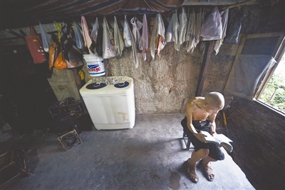 在重庆巫山县平湖大道平湖桥的桥洞里有一个“棒棒”旅舍,住着13个“棒棒”(“棒棒”,当地对农民工的称呼)和流浪人员。他们白天在巫山县城帮人干活,晚上就住在这个简陋的旅舍里。这个旅舍近100平方米,共30多个床位,2元一晚,每天都有10多人住宿,提供做饭洗衣等基本生活条件。图为85岁的陈定然老人在旅舍内看书。