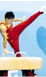 8月15日晚,深圳大运会男子体操个人全能决赛中,中国选手刘榕冰屈居第四。图为刘榕冰在鞍马比赛中。