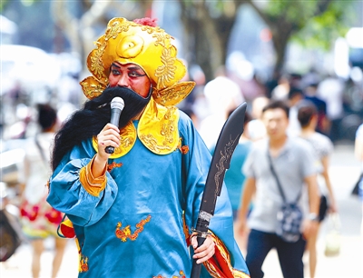 8月16日,一位自嘲为“破产哥”的男子,化装成关公在南京街头“卖唱”,希望能够还上数十万元的欠债。