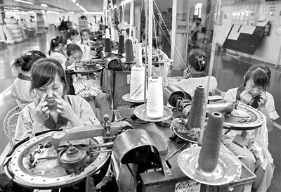8月17日,浙江梦娜袜业股份有限公司5个车间的2500多名员工同时做眼保健操。在袜子生产过程中,有些工种比较累眼睛,每天两次的眼保健操,对员工的视力起到了保护作用。梁臻 摄