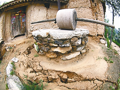 碾子周围的地面也在塌陷,碾磨了几十年的记忆即将消失。