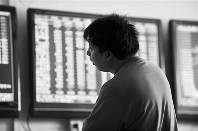 8月19日下午,股民在沈阳一证券交易所关注大盘走势。