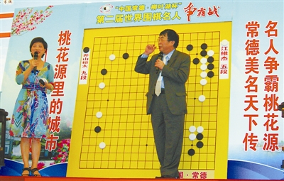 在江维杰和井山裕太结束战事后,聂卫平和徐莹五段即对他们的棋局进行复盘、讲解。其中,聂卫平心直口快兼带幽默的解说,时不时地把棋迷们逗得哄堂大笑。 本报记者 黄哲雯 摄