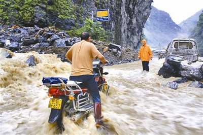 当日,湖北省宜昌市兴山县、神农架林区遭到暴雨袭击,209国道沿线多处路段发生泥石流、滑坡等灾害。目前,当地多处房屋被损毁,道路中断,车辆严重拥堵无法通行,上百人被困。新华社发(邹远景 摄)