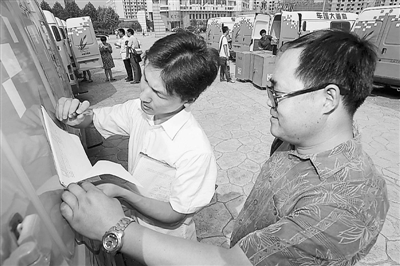 8月22日,来自全国各地的200多名地方科协代表领到期待已久的科普大篷车钥匙,此次交接的65辆科普大篷车将奔赴偏远基层,为当地群众开展科普教育。图为来自青海湟源县科协的工作人员正在确认领到的科普大篷车里的装备。