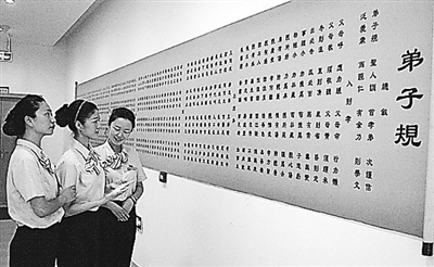 浙江椒江供电局为提升营业窗口人员的服务技能,要求窗口人员个个做到“内外兼修”。今年7月份,该局客服中心在营业厅走廊设置国学文化墙,窗口人员人手一册《弟子规》,力求以传统道德来促进行为礼仪的规范。目前,30名窗口人员个个都是礼仪“行家”,并在台州电业局举办的礼仪操大赛中获得第一名。钱婧婧 傅微丝 摄