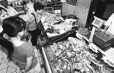 8月25日,在柳州市一限价猪肉销售点,市民在购买猪肉。