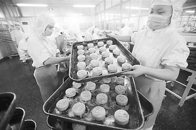 中秋节临近,北京老字号稻香村正加紧赶制月饼,以满足市场需求。据了解,许多月饼品种仍采用手工制作的老手艺,保留了月饼的独特品相与优质口感。 新华社发 (陈晓根 摄)