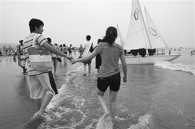 青年人在山东青岛金沙滩休闲度假 本报记者 杨登峰 摄