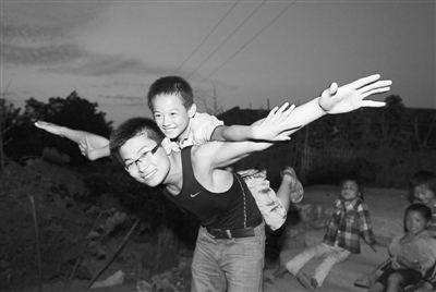 在吉卫镇葫芦村,来自上海理工大学的研究生与村里的孩子们一起玩耍。