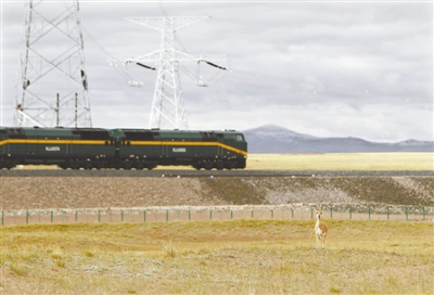 青藏公路、青藏铁路、青藏电网联网线被誉为青藏高原的三大天路,几大工程在施工过程中尽量保护脆弱、敏感的高原生态不遭破坏。正在建设中的青藏电网联网工程,国家电网公司要求在施工工程中,如果有动物迁徙,一定要停止施工;工程车经过草甸时必须铺设干草帘子,减少对地表植被的压占和破坏;施工结束后必须及时清理施工现场,按要求对砂土和植被进行回填。他们通过多种措施,尽可能恢复施工区自然生态原貌和野生动物的可利用生存环境,使高原生态呈现和谐景象。本报记者 杨登峰 摄