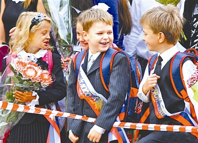 9月1日是俄罗斯知识日,也是孩子们上学的第一天。这一天,俄罗斯各地学生共同欢度俄罗斯知识日。图为当天孩子们在家长陪同下参加庆祝活动和开学典礼。阿健 供图