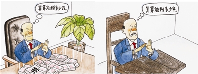 一名身居要职的官员,当他的屁股坐在权力的座椅上,他在算,算算自己能捞到多少钱;东窗事发后,当他坐在被告席上,他还在算,算算自己能坐多少年牢。两把椅子,两个位置,同一头脑计算的是完全不同的两道“试题”。