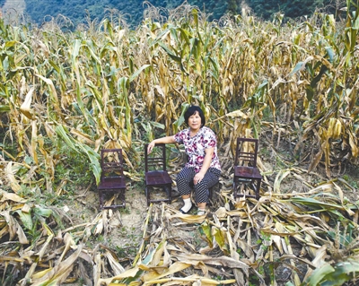 陕西省旬阳县白柳镇,胡尔桂在村里的玉米地里(8月30日摄)。胡尔桂的丈夫和两个孩子在外打工。新华社记者 刘杰摄