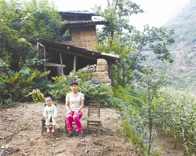 陕西省旬阳县石坪村,吴会琴和两岁的儿子在家附近的空地上(8月30日摄)。吴会琴的丈夫外出打工。新华社记者 刘杰摄