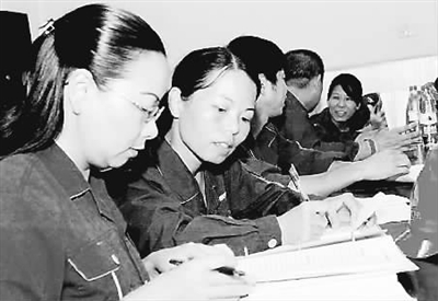 8月31日,江西铜业公司德兴铜矿工会组织矿AA级学习型班组的班组长们到10个公司AAA级学习型班组串门,交流与学习。这不!首次串门的班组长们感到格外新鲜与高兴,用笔抄、用手机拍照、不懂就问……他们恨不得把友班创建学习型班组的好东西全部带回去。吴朝仁 摄