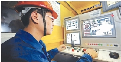 坐在李鹏工作的座位上,记者发现视线前方除了斜上方的显示屏外,只能看到一行黑色的英文字,想看到室外的情况,必须站起来。“KOM……后面的字母是什么?”记者故意停下来考他,“ATSU”,他眼睛都不抬地答了出来,“这是小松的意思,是这台盾构机的名字。”