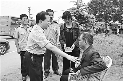 在中秋、国庆两节即将到来之际,郑州铁路局新乡车务段领导分别走访慰问了47户困难职工、伤残病人员,让他们过一个愉快、祥和的中秋、国庆佳节。卫辉车站困难职工史保灿在得知段党委书记胡会东要到家里看望他时,坚持要到路边迎接慰问人员。在家人的搀扶下,他在家门口对胡会东说:“我真想早点恢复身体,回到岗位上,用行动回报组织的关怀。” 王欢 摄