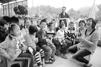 9月12日,湖北宣恩县“小爸爸乐园”的留守儿童欢聚一处,共度中秋节。