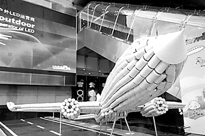 8月14日,由2800个可乐罐组成,耗时18天完成,长6米、宽5.8米的“空客330”空降杭州,宣传低碳飞行、快乐体验的理念。朱引炜 摄