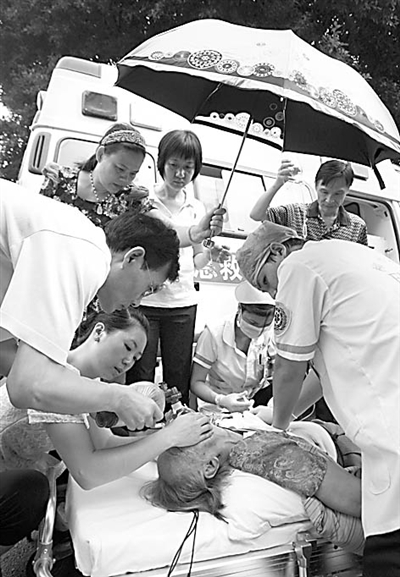 其中两名妇女一直协助120急救人员对老人进行现场抢救,义务工作持续近1个小时不愿离开,直到老人被送去医院。
